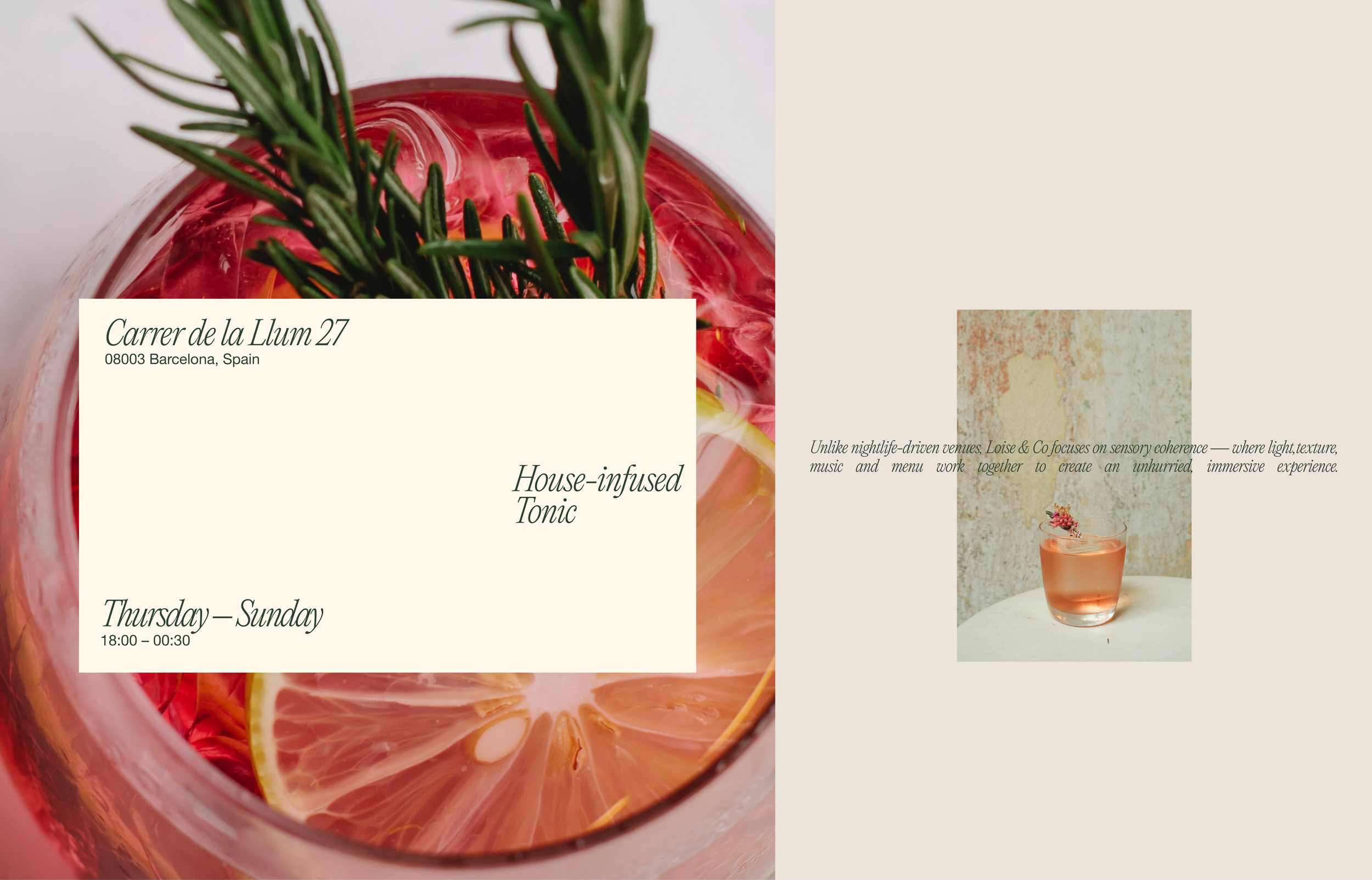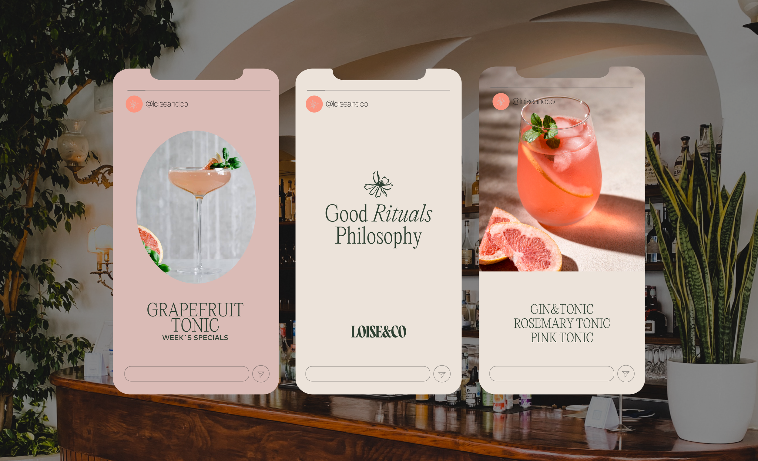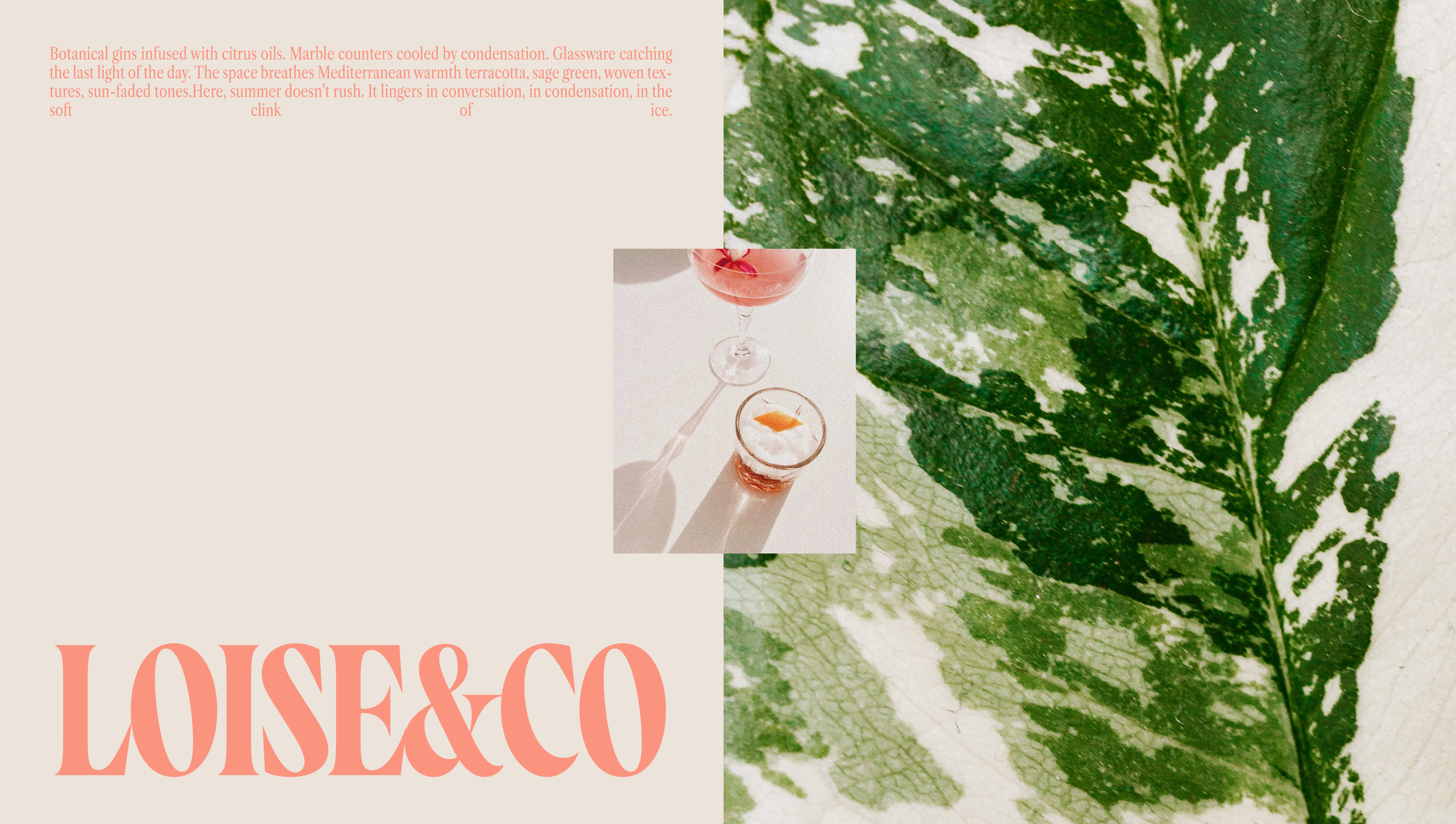Brand identity for Loise & Co, a Mediterranean botanical gin bar inspired by seasonal ingredients and coastal warmth.